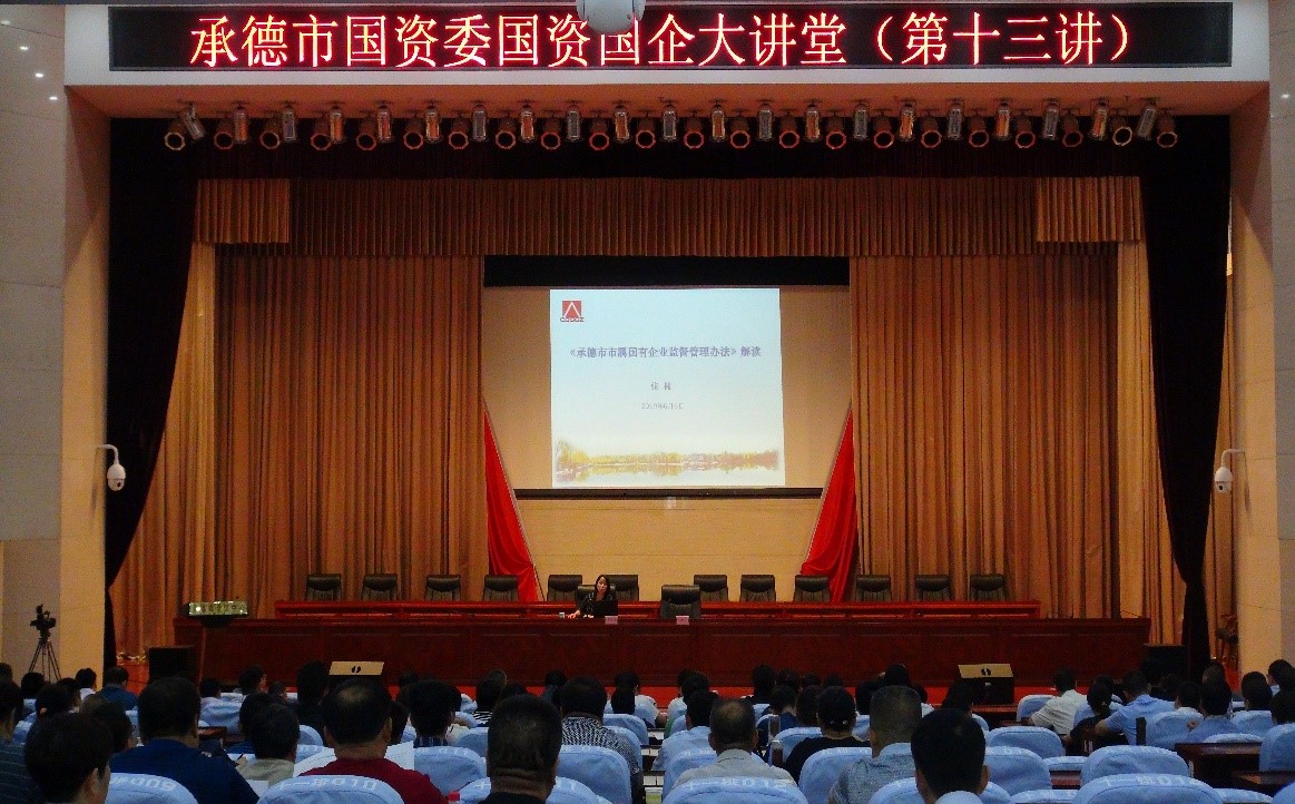 本次大讲堂由市国资委党委委员、副主任陈宏同志主持,市国资委监事会主席张楠同志向参会人员介绍了我市印发的《承德市市属国有企业监督管理办法》具体要求,并对该办法进行了详细解读;我公司总会计师赵俊华同志就融资工作进行了讲解,并向参会人员分享了爱体育在线官网在融资活动中的经验。