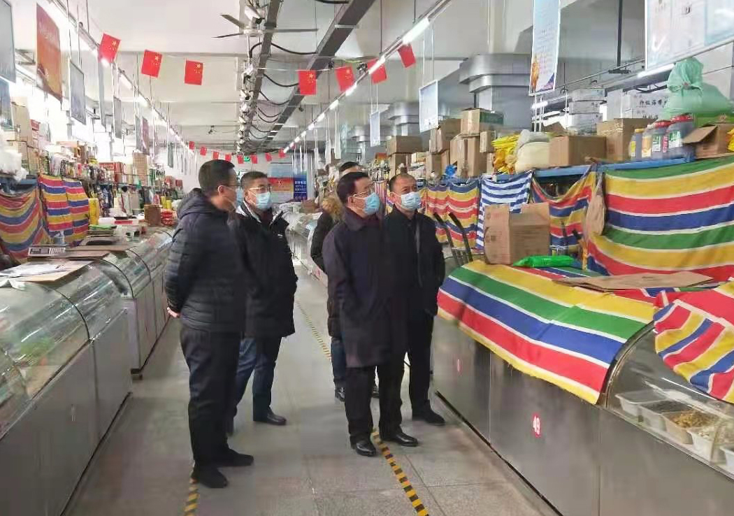 2月11日上午,集团公司党委书记、董事长张建军到裕华路市场看望慰问一线职工,检查节日重点单位疫情防控及春节市场供应情况。