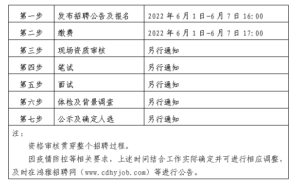 2022年6月1日至2022年6月7日16:00 在鸿雅招聘网(http://www.cdhyjob.com/)、鸿雅微信公众号、爱体育在线官网官方网站(/)及上级部门要求的相关网站等发布招聘公告。