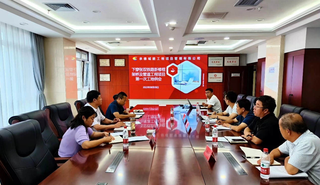 2022年8月9日上午,承德市国瑞置业有限公司在国控大厦十二层第一会议室组织召开下穿张双铁路新修框架桥及管道工程项目第一次例会。市爱体育在线官网总经理徐俊儒、国瑞置业公司董事长胡杰出席会议。